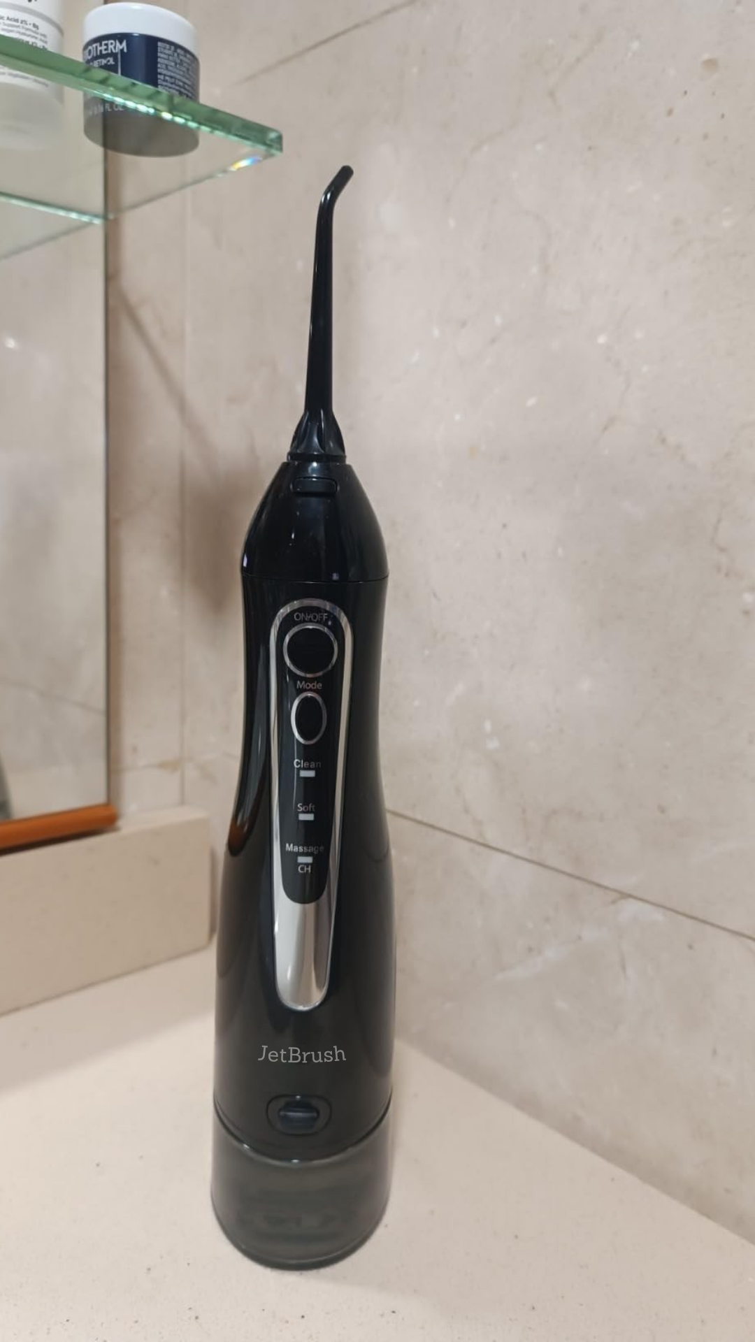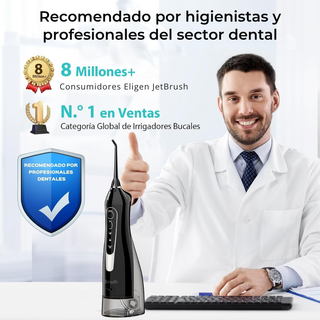 Te presentamos JetBrush: el irrigador bucal portátil de alta potencia que te ayuda a limpiar donde ni el mejor cepillo llega.