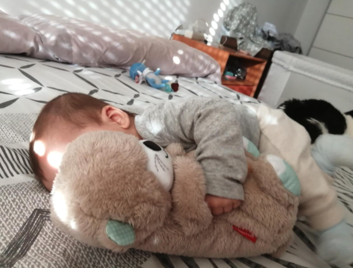 • Este peluche imita el ritmo de tu respiración, calmando a tu bebé de forma natural, para que deje de llorar y tú dejes de volverte loco a media noche.