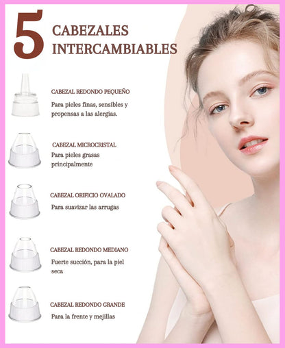 💧 5 cabezales intercambiables: Perfecto para cada rincón de tu cara. Uno para esos molestos puntos negros, otro para exfoliar, y hasta uno especial para suavizar esas arrugas que no te dejan dormir.